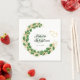 Create personalised napkins for your elegant botanical theme wedding with elegant emerald green and gold eucalyptus wreath and hearts on white background. Type the bride's and groom's names and the event date using the template, or customise it even more inside the design tool.