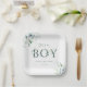 Eucalyptus Botanical Green Letter Boy Baby Shower Paper Plate