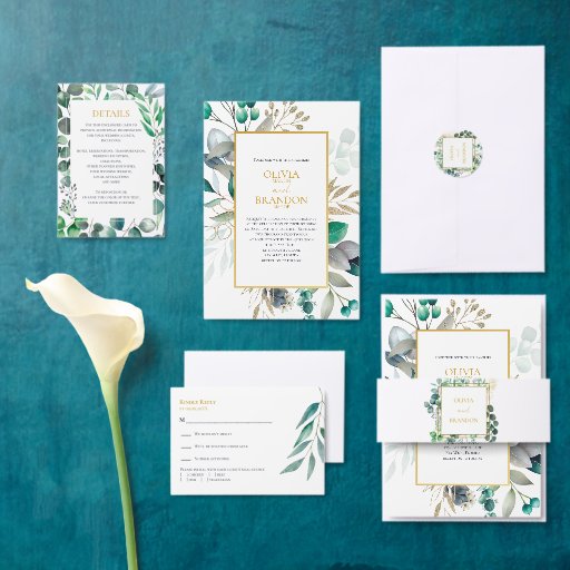 Eucalyptus Botanical Greenery Wedding Invitation, RSVP Card
