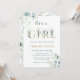 It's a girl baby shower invitation features painted watercolor eucalyptus and green leaves with botanical gold letters. For more advanced customisation of this design, please click Customise Further link to change font, size, and colour.