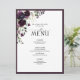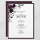 Create the perfect reception setting with this trendy 6.5"x 8.75" menu design featuringa a bouquet of rich plum purple, lavender and mauve flowers and botanical greenery, and is bordered in plum purple. Personalize your details accented with beautiful modern hand lettered calligraphy. Perfect for, but not limited to, that backyard and garden wedding. Part of a matching set. See full collection here: https://www.zazzle.com/collections/plum_purple_floral_watercolor_calligraphy-119555439716895357 Contact designer for matching products. Copyright Elegant Invites, all rights reserved.