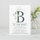 Eucalyptus Botanical Watercolor Baby Shower - B is for Baby, an elegant Baby Shower Invitation featuring the Mummy to Be, watercolor eucalyptus touched with gold and modern, simple typography. The perfect invitation for any Baby Shower.