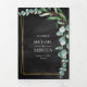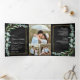 Eucalyptus Branch Black Gold Photo Collage Wedding Tri-Fold Invitation