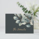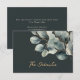 This chic enclosure card features the phrase “The Details” in luxurious gold script, set against a delicate eucalyptus branch design on a rich dark green background. Designed in a landscape format, the front presents a stylish, nature-inspired aesthetic, while the back provides ample space to include important wedding information such as location, accommodation, and contact details. The sleek combination of gold script and minimalist font makes this card both functional and elegant, perfect for guiding guests with essential information in a refined and coordinated style.