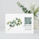 This RSVP card combines modern convenience with natural elegance. The card features a stylish white background, contrasted beautifully by a delicate eucalyptus branch in soft green tones. A prominent QR code is placed to the right, offering guests a simple, tech-savvy way to respond, while the "please rsvp" script adds a personal, inviting touch. The clean, minimalist layout makes this card ideal for contemporary weddings or events that blend modern technology with natural elements.