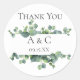 Silver Dollar Eucalyptus branches personalised thank you favour sticker. Personalise text font style, colour, and size.