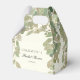 Stylish bridal shower favour box featuring a soft eucalyptus leaf design in sage green and beige on a clean white background. Customisable with the bride’s name and shower date, it's ideal for elegant and nature-inspired celebrations. Perfect for treats, small gifts, or thank-you surprises for your guests.