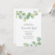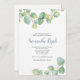 This elegant botanical bridal shower invitation features Victoria's original watercolor painting of eucalyptus greenery on a crisp white background. The bride's name is set in a grey blue ink. Your shower details are draped with abundant green branches of eucalyptus leaves in a vibrant painted watercolor by Victoria of VG Invites. To see more, visit www.zazzle.com/vginvites