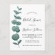 These simple elegant Bridal Shower Invitations are decorated with a single eucalyptus sprig and modern typography.