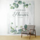 Eucalyptus Bridal Shower Photo Booth Backdrop tapestry. Great party wall decoration and banner for a trendy modern botanical theme bridal shower.