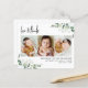 A modern eucalyptus photo baby thank you card.