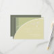 With a colour palette from ivory to spring green and dark moss, this wedding collection features a handwritten script font and eucalyptus leaf accents to add that wonderful modern touch. The RSVP card shown here in horizontal format, has all the above with a striking striped pattern in shades of green topped by an elegant curved shape in coordinating flax gold. Add your preferred text using the provided template. Search ID901 to see other colour choices and coordinating pieces for this unique wedding collection.