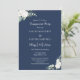 This eucalyptus cotton navy modern v2 engagement party invitation is perfect for your modern wedding. This design features eucalyptus greenery with white cotton fluffs on a dark navy blue background and white calligraphy script in a modern classic traditional layout. Please feel free to reach out to us with any questions about this design.