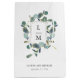 This simple and trendy wedding welcome or thank you gift bag features green watercolor eucalyptus leaves surrounding a crest with your monograms in the centre, on a clean white background.