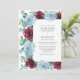 These elegant wedding invitations feature a modern watercolor floral dusty blue and burgundy rose and eucalyptus foliage design. Personalise with your text. Matching wedding suite products also available.