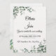 This wedding invitation design exudes natural charm and refined simplicity. Featuring lush eucalyptus leaves in soft green tones, it frames the layout with botanical grace from the top left and bottom right corners. The white background enhances the clean, airy aesthetic, while the mix of cursive and serif fonts adds a romantic and timeless touch. Ideal for nature-inspired weddings, this design blends organic beauty with classic elegance, making it perfect for couples seeking a serene and stylish invitation.