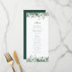 This menu card features emerald green watercolor eucalyptus and sage green botanicals. Customise all your menu selections for your celebration