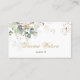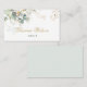 Wedding place card with watercolor eucalyptus leaves and golden floral. In this design you can remove the sample text (blank card). Then you would have to write the individual names by hand.