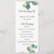 Rustic chic watercolor eucalyptus foliage wedding program. Personalise text font style, colour, and size.