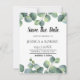 Watercolor eucalyptus bouquet of branches with matching pattern on back. Personalise text font style, colour, and size.