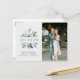 Announce your wedding date with this stylish design that has script lettering with eucalyptus leaves and a photo of the couple . The text is editable along with the lovely image.