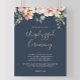 This eucalyptus garden rose floral unplugged ceremony poster is perfect for a modern wedding or bridal shower. The design features pink, blush, yellow rose flowers with eucalyptus leaves in a dark navy blue background.