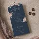 This eucalyptus garden rose floral wedding all in one invitation is perfect for a rustic wedding. The design features pink, blush, yellow rose flowers with eucalyptus leaves in a dark navy blue background.