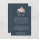 This eucalyptus garden rose floral wedding details enclosure card is perfect for a rustic wedding. The design features pink, blush, yellow rose flowers with eucalyptus leaves in a dark navy blue background.