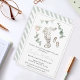 Watercolor green eucalyptus baby clothes, toys gender neutral or baby boy baby shower invitation card.