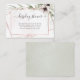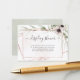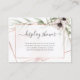 Baby shower display shower cards featuring anemone flowers and eucalyptus leaves in a rose gold geometric frame.