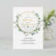 Wild forest woodland eucalyptus herbarium Dedication, Baptism or Christening invitation with gold foil geometric frame designed to be quickly and easily customised to your event specifics.