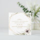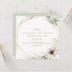 This eucalyptus gold geometric wedding invitation is perfect for your elegant boho wedding. It is designed with simple bohemian white and purple anemone flowers, simplistic watercolor sage green leaves, and modern gold foil winter frames. With the combination of white floral and simple rustic greenery, you're sure to create the atmosphere of your dreams.