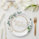 Eucalyptus gold glitter wedding paper plates with a beautiful and elegant template design that you can easily edit.