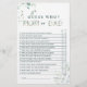 This "guess who mummy or daddy" baby shower game features painted watercolor eucalyptus and green leaves with botanical gold letters. For more advanced customisation of this design, please click the BLUE DESIGN TOOL BUTTON. Matching items are also available.