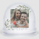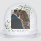 This elegant wedding photo snow globe features a white background with eucalyptus and faux gold leaves in watercolor. Personalise it for your needs. You can find matching products at my store.
