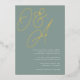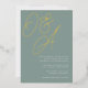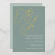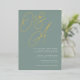 A beautiful typography based monogram wedding invitation featuring your initials in oversized gold foil script lettering at the top, in tone on tone shades for a watermark effect. Personalise with your wedding details in classic serif lettering aligned at the lower right. Our Eucalyptus colorway is an elegant mix of dusty greens, featuring pale green and white lettering on a sage green background.