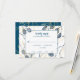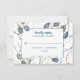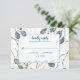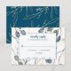 Simple and stylish, these are the perfect RSVP cards to send to all of your future wedding guests. The design features hand-painted blue watercolor eucalyptus branches with gold leaves in the background. A white with blue border box surrounds the response text that is completely customisable. The back features a blue background with the gold foliage.