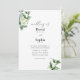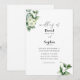 An invitation blending crisp, classic typeface with subtle watercolor greenery, offering a fresh and elegant introduction to any couple's special day. Ideal for those seeking a touch of natural beauty in their celebration.