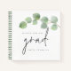 Eucalyptus Graduation Wishes for Grad Guest Book. An alternative option for your graduate party guest book, perfect for your Guests to write their good wishes, this design has elegant set script for Grad and the rest of the text can be easily personalised, including the words on the back cover. A branch of sage green watercolor eucalyptus leaves runs across the top on the front cover.