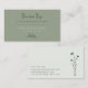 Advertise for your business with these clean and elegant business cards. The hand drawn botanical sprig and wildflowers adds a subtle touch while making your business name the main attraction. These earthy colors are calming and communicate a sense of trust and comfort to your potential client. The front is olive green and the back is an off white with a hint of green. These are the perfect way to get your information into the hands of your market!