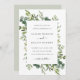 This wedding invitation features painted watercolor eucalyptus, green leaves and rectangle frame. For more advanced customisation of this design, Please click the "Customise further" link. Matching items are also available.
