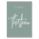 Eucalyptus Green Hand Scripted Table THIRTEEN Table Number