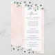Modern chic watercolor Eucalyptus greenery and anemone floral on blush pink background, with trendy menu script, elegant and stylish, great wedding menus for rustic wedding, botanical wedding and beach wedding in spring and summer.