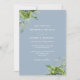 This elegant eucalyptus greenery botanical dusty blue wedding invitation can be personalised with your information in chic typography with your monogram on the reverse. Designed by Thisisnotme©