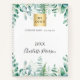 An elegant white background. Decorated with watercolored eucalyptus greenery and woodland ferns. Add your business logo, (front and back) text, year, name. If you want it without text, use your back-space key to delete.