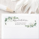 This elegant return address label with its watercolor eucalyptus leaves forms part of a co-ordinating wedding suite.