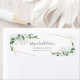 This elegant return address label with its watercolor eucalyptus leaves forms part of a co-ordinating wedding suite.