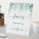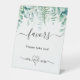 Eucalyptus greenery ferns wedding favours guests pedestal sign