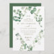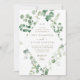 A greenery wedding design with a foliage frame with text in the middle and lovely green eucalyptus leaves,