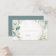 Modern wedding place card featuring eucalyptus leaves and greenery surrounding a faux gold geometric frame, over a pastel watercolor wash. The backside is a matching shade of soft blue green. This elegant, rustic design is great for a botanical themed wedding in the summer.